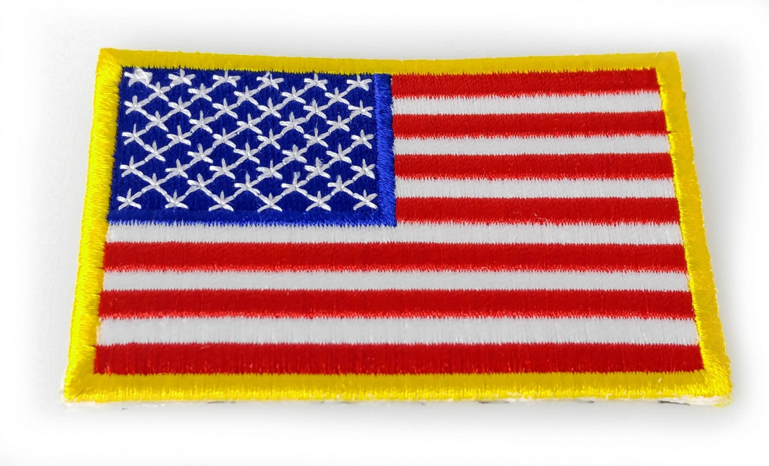 American US Flag PATCH Small Yellow Border 3 Inch - 3x2 inch