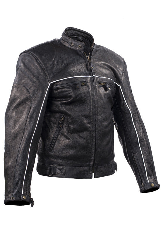 This ultimate cowhide racer jacket that features z/o lining that runs through the sleeves. The jacket also includes light reflector on front and back. The jacket includes two air vents on the front and back.