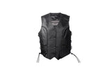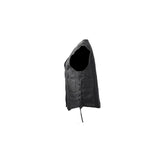This dark ladies snap-up vest made from top-grade genuine Soft Touch leather is as smart as it is simple. Our Classic style vest features ornamental braiding, multiple pockets for the uncomplicated biker and, with its nylon lining, four button snaps, and laces on the back and bottom, the practical and comfort-first one as well.