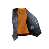Your bike and the clothes you wear tell everyone that only the best will do for you. This vest, made with the highest grade Naked Cowhide, comes with concealed gun pockets on both sides with button snap closures. You'll feel as comfortable as you do safe with side laces for adjustable fit, button snaps, and the polyester and nylon lining. Want to bring along some extra items for the trip? Rhino Gear covered that also with two front stash pockets, two front pockets with zipper closures, two inside pockets with zipper closures, and two without. Since we knew you'd be so proud to wear this vest we left the back panel solid so you could display your club's badges and colors.