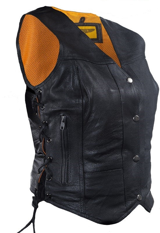 Women's Premium Leather Motorcycle Vest With 7 Pockets Laces And Gun Pockets