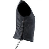 Women's Premium Leather Motorcycle Vest With Studs, Side Laces, and Conceal Carry Pockets